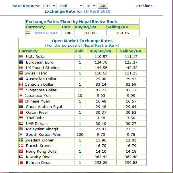 नेपाल राष्ट्र बैंकले ताेकेकाे आजकाे विनिमयदर